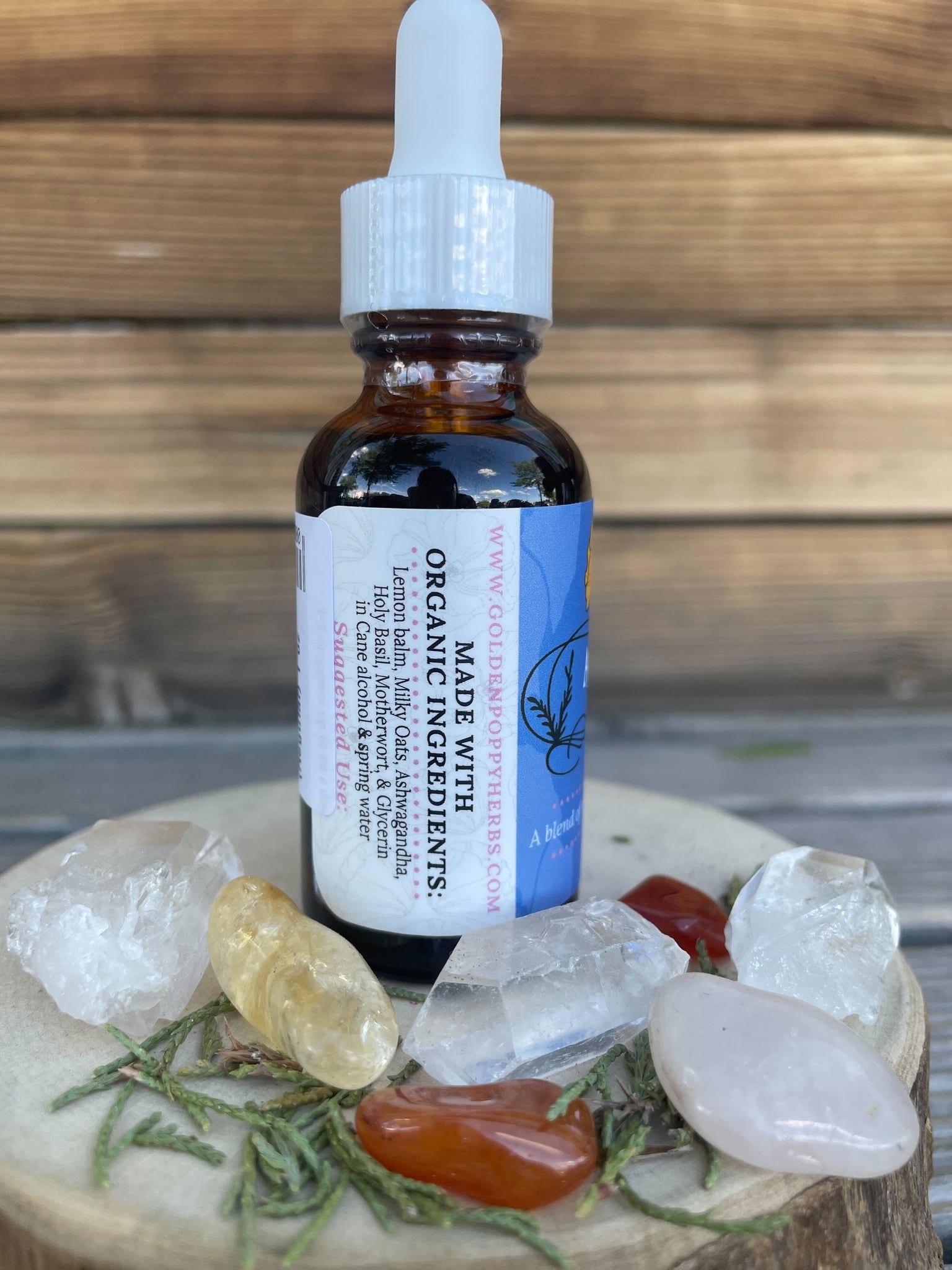 Crafted to gently calm and nourish an overactive nervous system, this blend brings together soothing, adaptogenic, and heart-centered herbs to help you find your center in times of stress and overwhelm.