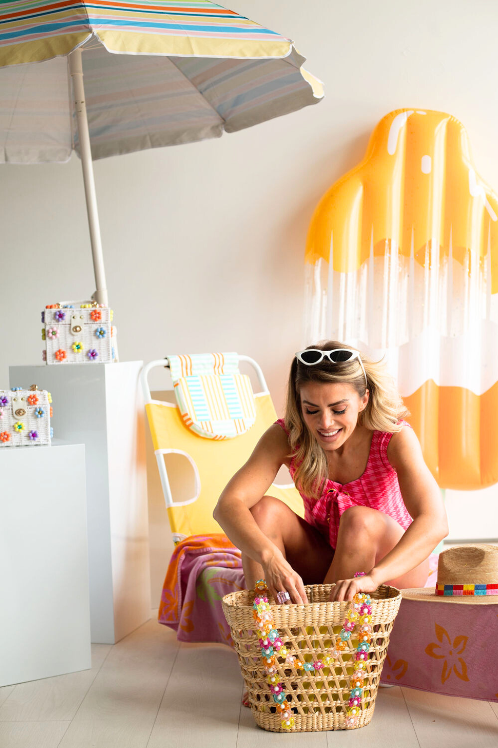 The cutest beaded beach tote has arrived. This woven natural straw beach tote is embellished with a unique multicolor beaded top handle. Interior basket is reinforced with sturdy boning so you can carry all of your beach & summertime essentials!