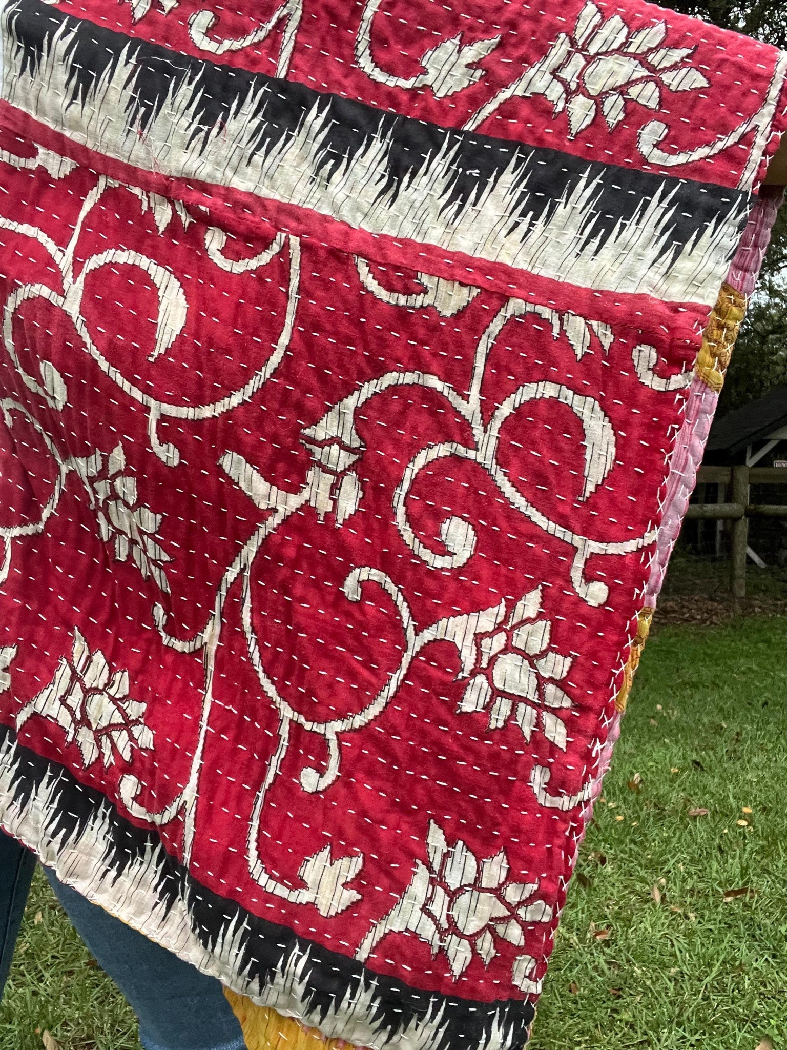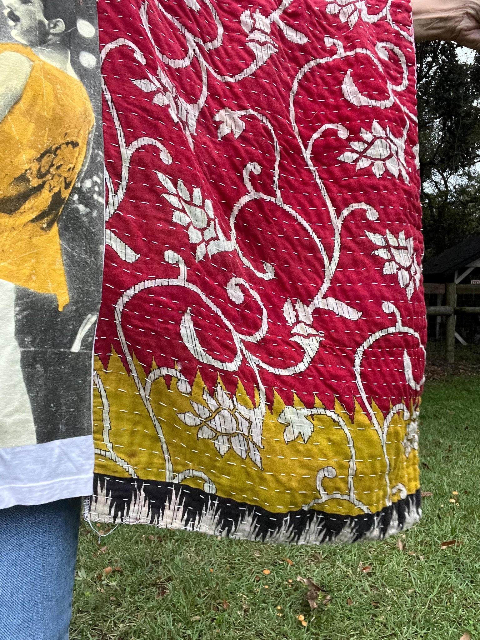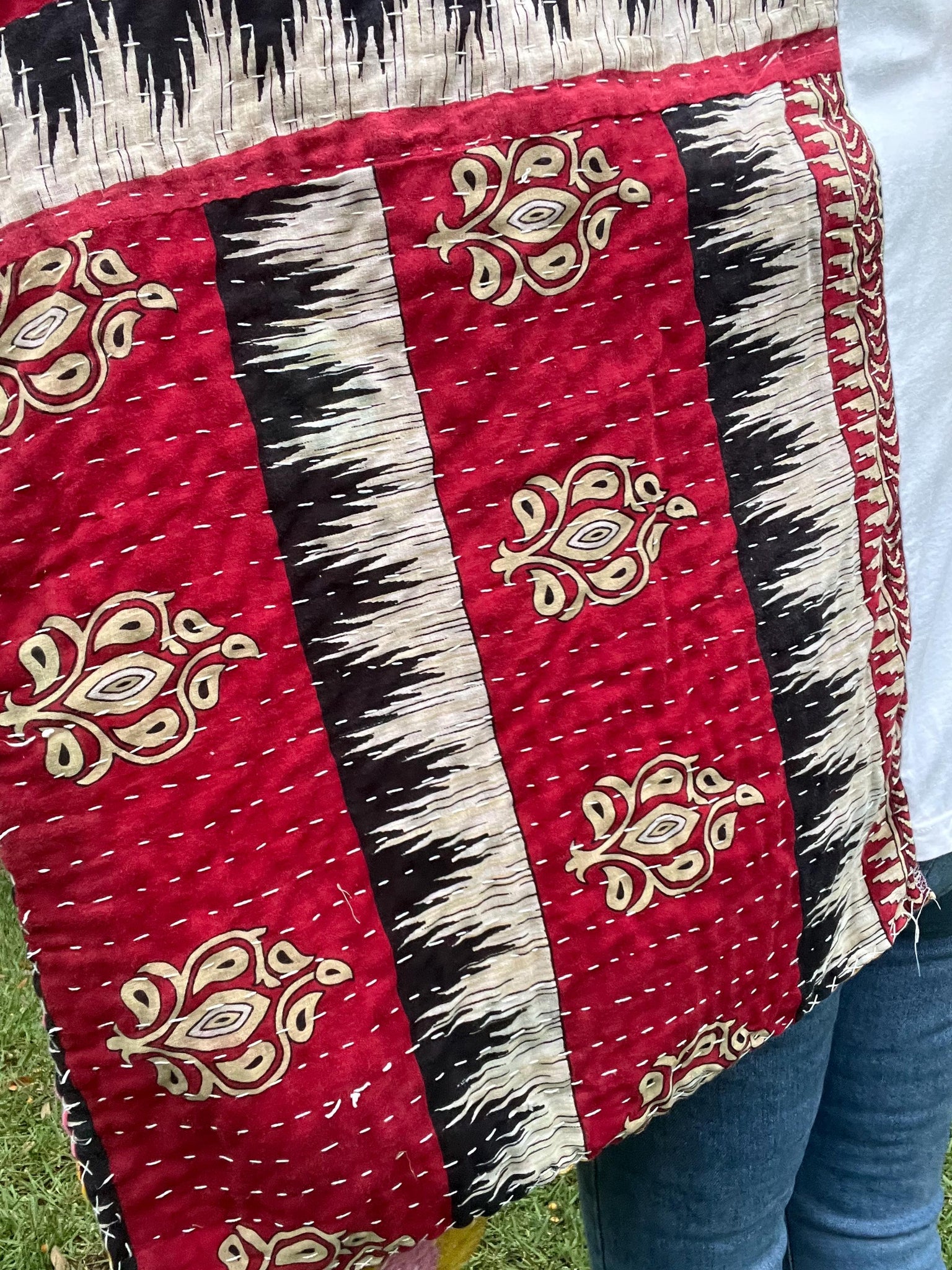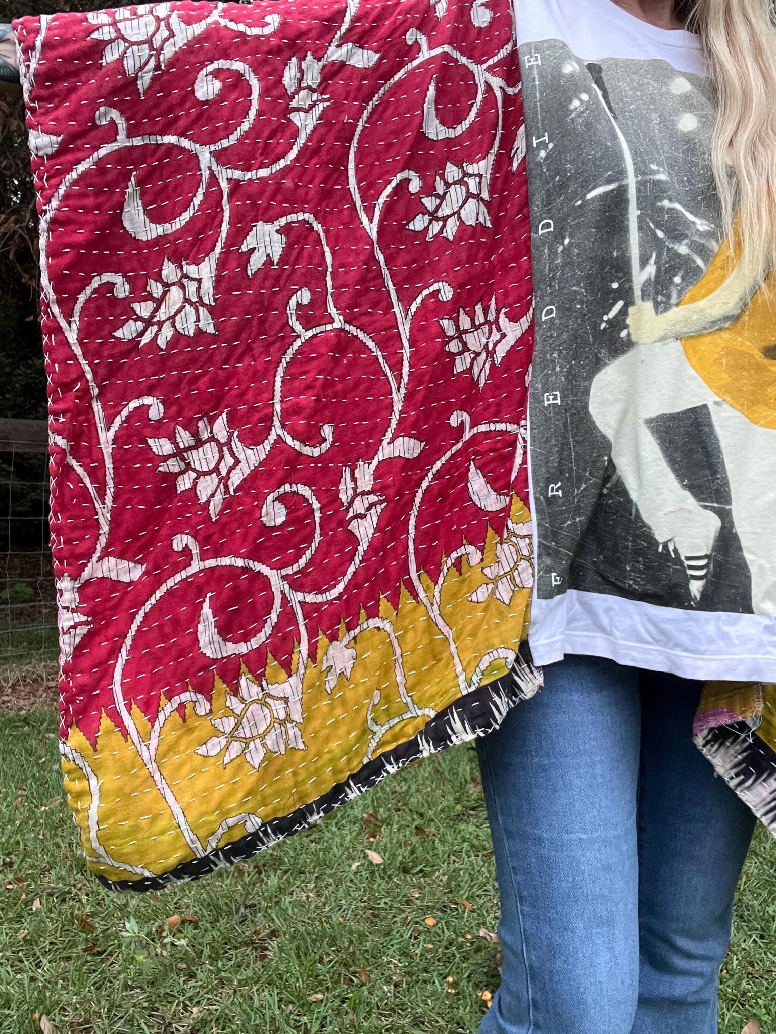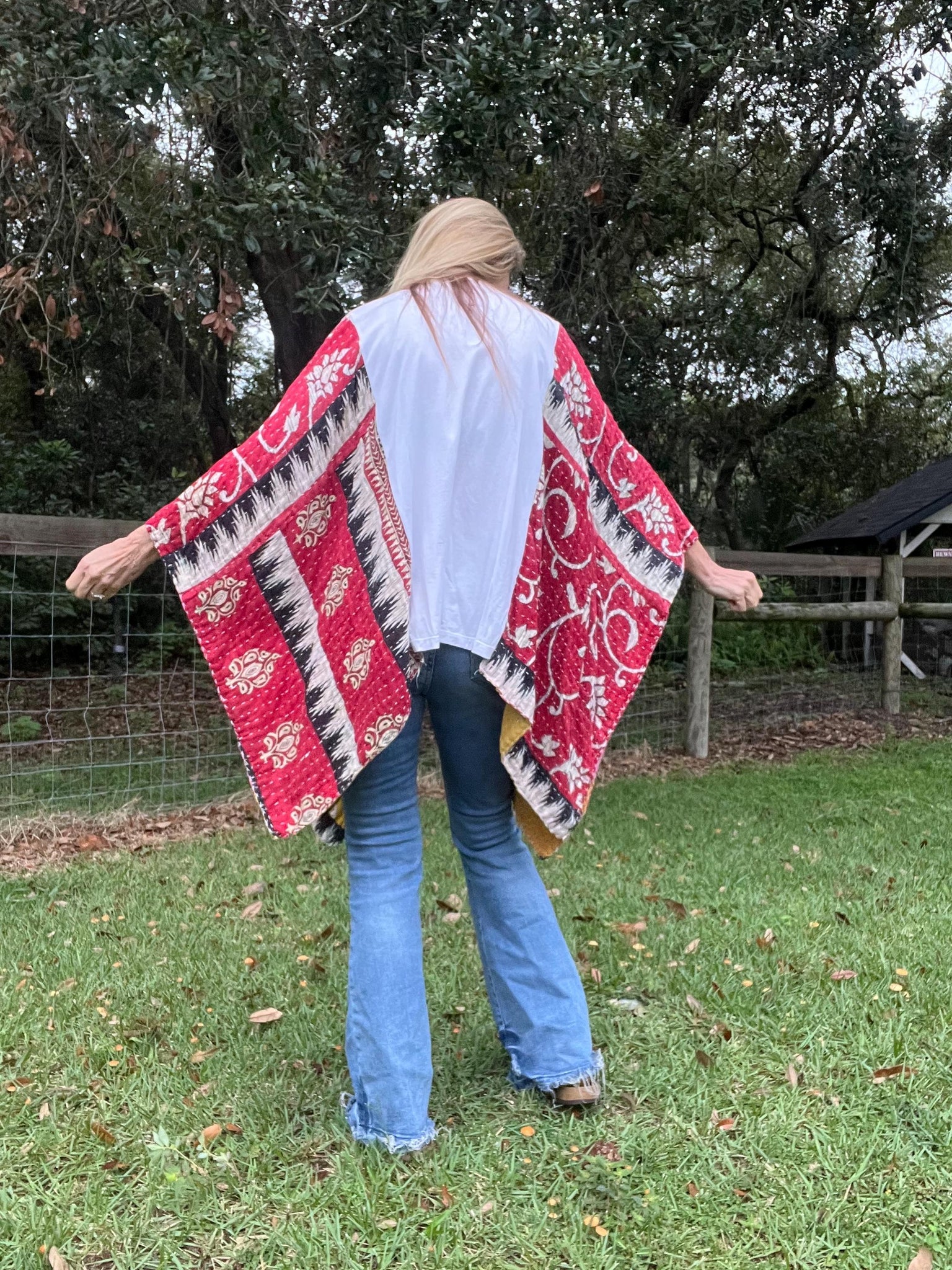 The flowy butterfly silhouette and rich red, mustard, and cream patchwork give it that perfect mix of retro and free-spirited charm. Whether you’re channeling your inner rock star or just love a look that tells a story, this poncho top hits all the right notes.