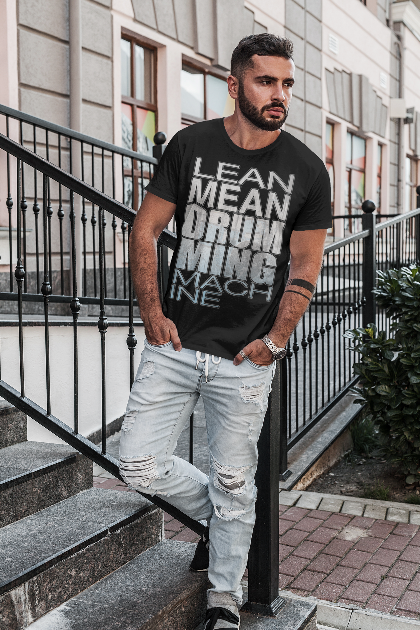 Featuring a sleek and modern design, this t-shirt proudly displays the phrase "Lean Mean Drumming Machine." It's a bold statement that captures the essence of drummers and their ability to create powerful beats and ignite the energy of any performance.