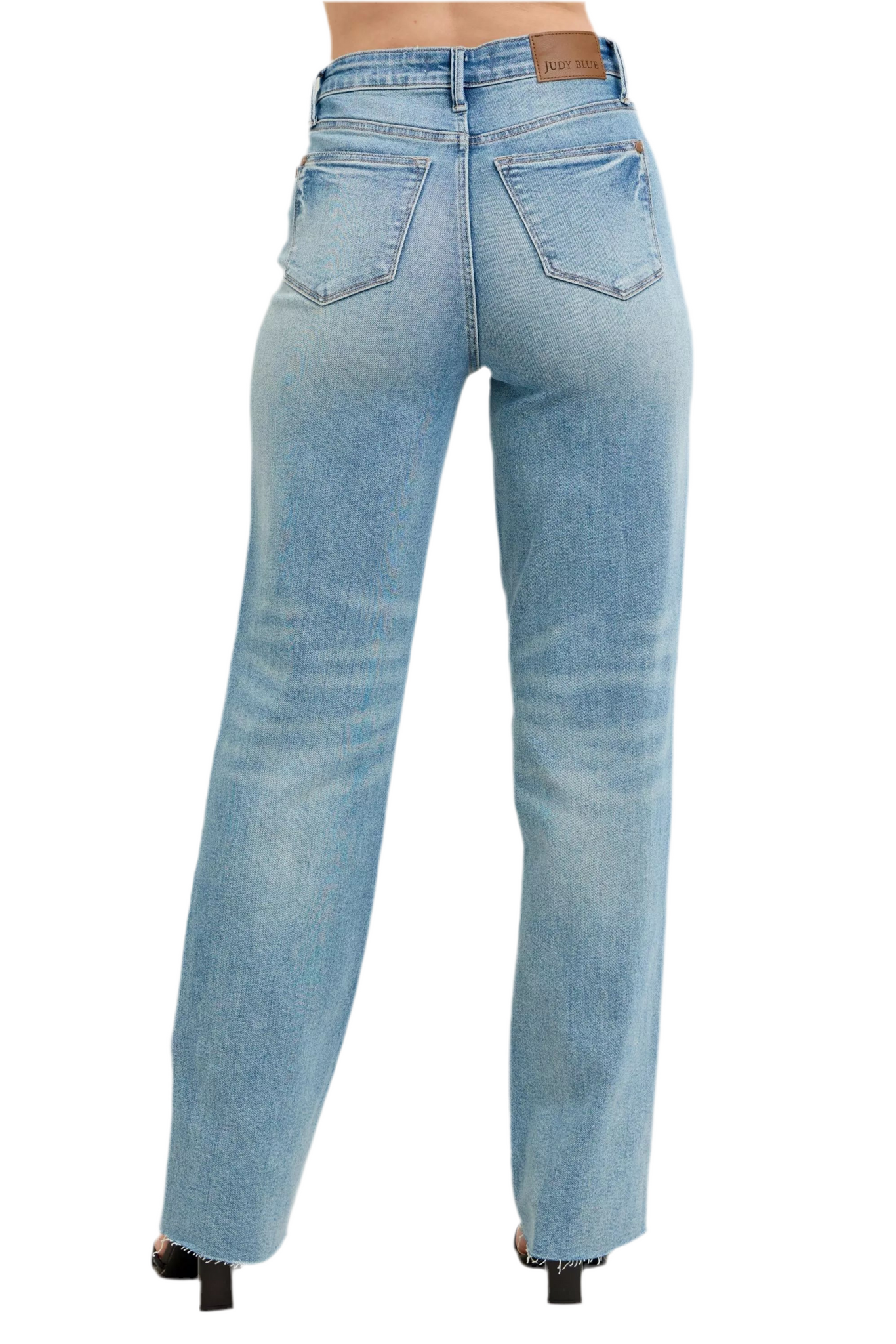 The High Waist Rigid Magic Star Shaped Destroy 90's Straight Jeans are a trendy and retro-inspired piece for any fashion lover. Their high waist design flatters the figure and enhances the silhouette. The magic star-shaped destroy details add a edgy and unique touch to the jeans. With a straight leg fit, these jeans offer a classic and timeless look. Perfect for those who love a vintage-inspired style with a modern twist.