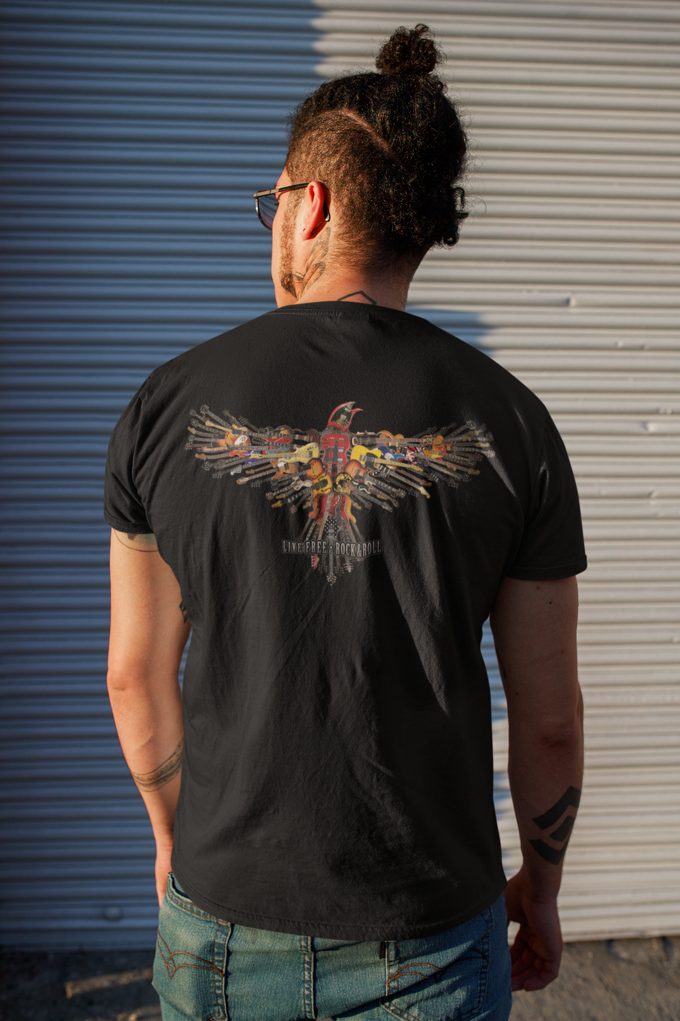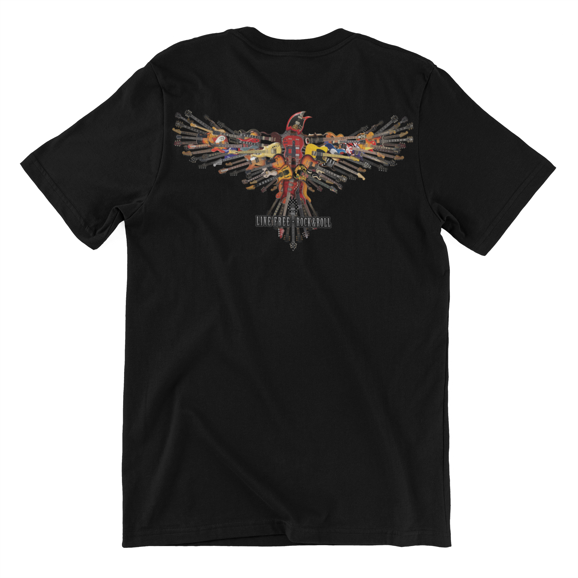 Embrace the freedom and energy of rock and roll with the TABOO Live Free Rock and Roll Eagle Guitar T-Shirt. It's the perfect choice for music lovers, rebels, and anyone who refuses to conform to the ordinary.