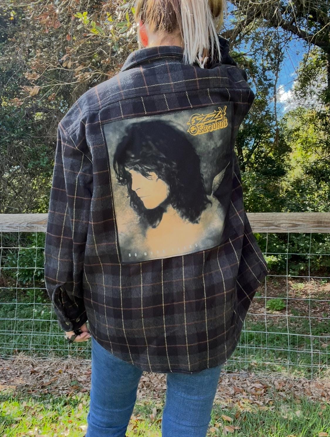 #ButterflyKrissy #UpcycledFlannel #OzzyOsbourne #NoMoreTears #RockNRollStyle #BoyfriendShirt #VintageVibes #RetroRebel #OneOfAKindFashion #FallStyle