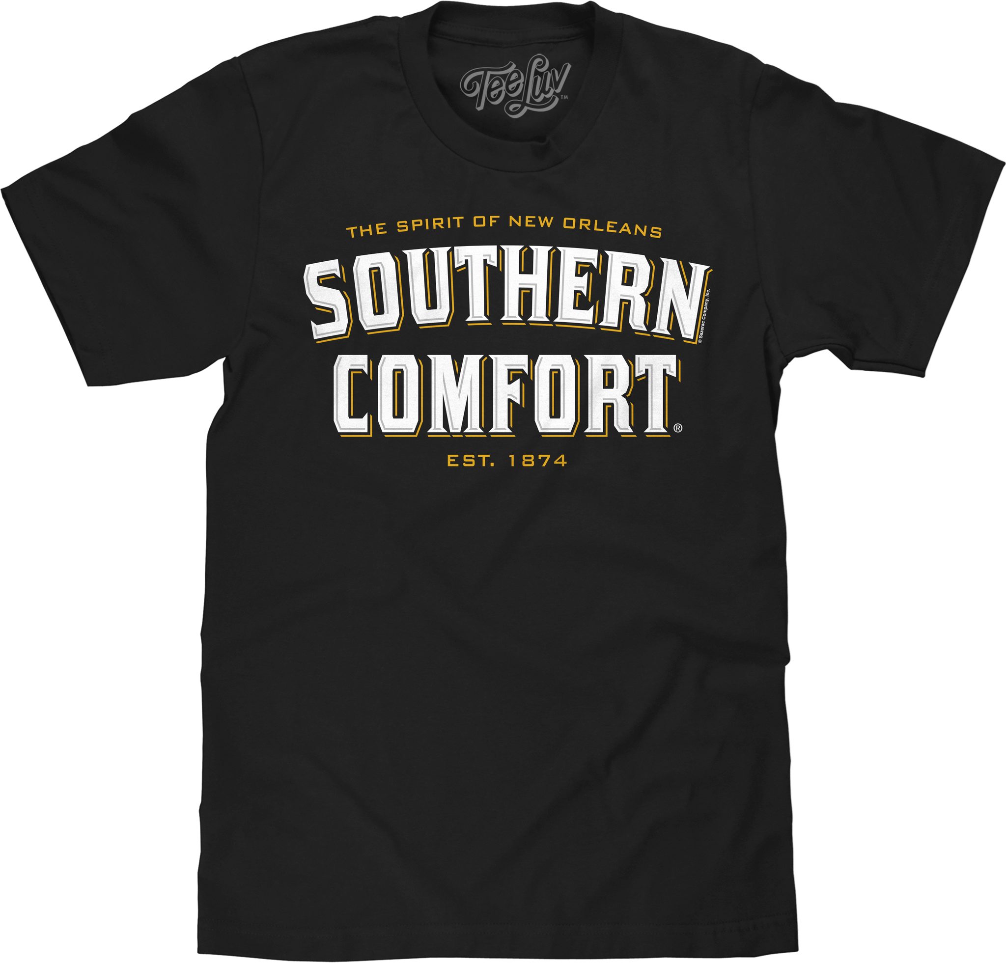 Capturing the laid back, one-of-a-kind spirit of the Big Easy isn't easy, but we think that this Southern Comfort t-shirt gets it right! We've paid tribute to the iconic SoCo whiskey liqueur with a graphic tee of their very own featuring the authentic, fully licensed "Southern Comfort" logo, along with "The Spirit of New Orleans" and "Est. 1874" text. To complete the retro look and feel of this whiskey shirt- we've printed the graphic on a soft, black cotton tee.