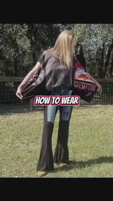 Introducing the ultimate poncho—where vintage vibes meet bold, upcycled style! We’ve combined the classic comfort of 3 separate t-shirts and edgy nostalgia to create a one-of-a-kind statement piece. Whether you’re layering up for a festival, a night out, or just want to turn heads, this poncho has you covered—literally!